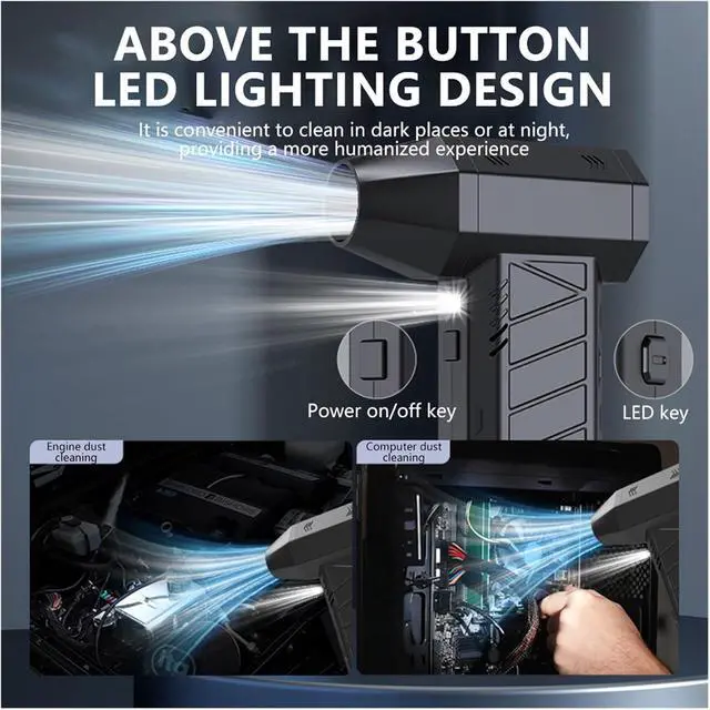 It is a versatile cleaning tool for home, car, and office, suitable for industrial dust blowing, soot blowing, keyboard cleaning, car and motorcycle cleaning, car center console cleaning, car crevice cleaning, foot mat crumb cleaning, picnic garbage cleaning