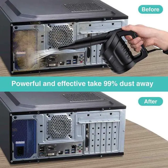 [Lightweight and Easy to Use]Air Duster having an extra-long 10-foot cord and with a weight of only 1.9 pounds. Easy to use and allows you to maneuver around easily. (When using, DON'T put it on the table to block the air inlet, otherwise, it will cause serious heating or stop working.)