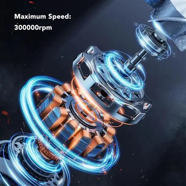 MINI BUT POWERFUL: The air blower is compact and lightweight, with speeds of up to 300,000 RPM. this miniature blower delivers airflow at a maximum speed of 52m/S. It is designed to be used on a variety of surfaces, such as wood and wood. Quickly dries surfaces and provides impressive airflow. In addition it has multiple adjustable speeds to suit any of your needs.