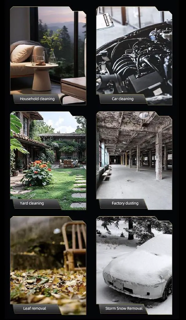 VERSATILE APPLICATIONS: Can be used for jobs such as snow removal, inflation, rapid cooling, dusting, yard cleaning, industrial dusting, keyboard cleaning, car and motorcycle cleaning, crack cleaning and more.