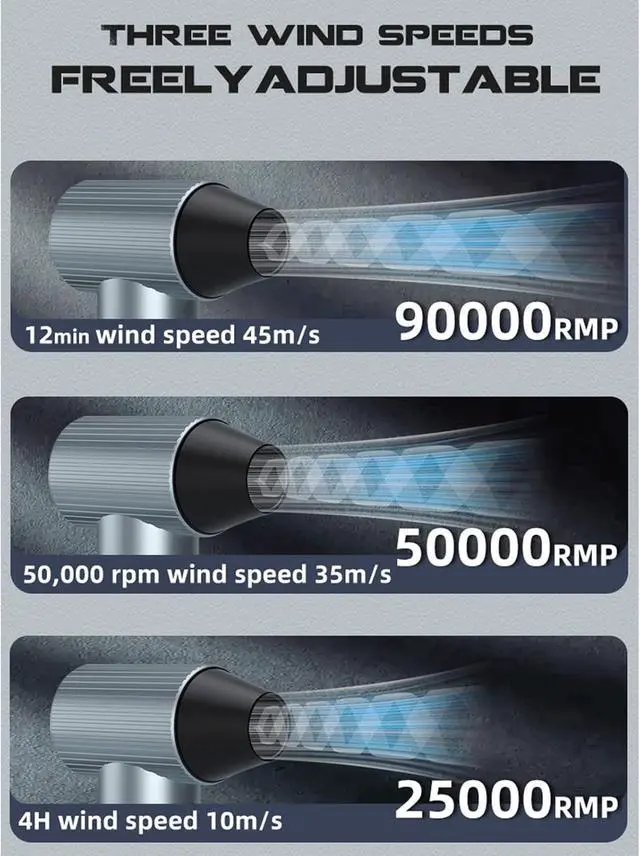 The 1st gear is 25000rpm, the second gear is 50000rpm, and the third gear is 90000rpm, so that the work can be completed quickly and efficiently to meet all your needs