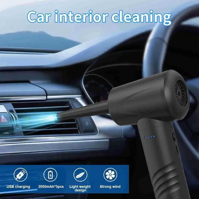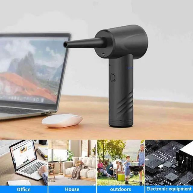 [3 IN 1 MULTIFUNCTIONAL AIR DUSTER] This powerful air duster combines three functions in one device: blowing dust inflating objects and vacuuming. Equipped with 6 interchangeable nozzles it effortlessly cleans PCs keyboards office desks and car interiors. It also doubles as a handy tool for inflating swimming rings air mattresses and vacuum storage bags.