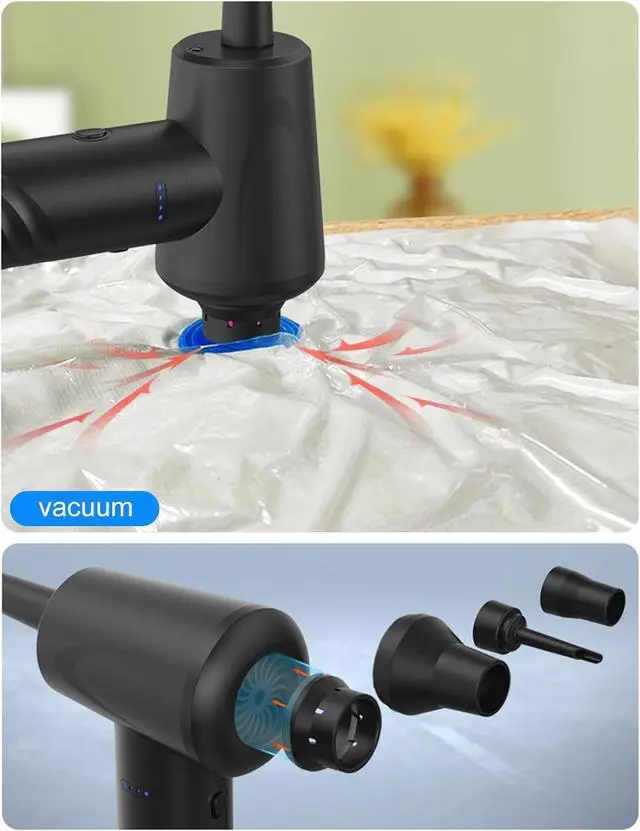 [Versatile with 6 Functional Nozzles] Comes with six distinct nozzles: an air blowing nozzle, brush nozzle, inflator/deflator adapters for airbeds, vacuum suction nozzle, and swim ring inflation nozzle. This versatility lets you electronics, vacuum crumbs, or prep for campingall with one compact tool.