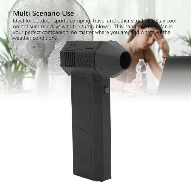 Multi Scenario Use: Ideal for outdoor sports, camping, travel and other situations. Stay cool on hot summer days with the turbo blower. This handheld turbofan is your companion, no matter where you are, and whatever the weather conditions.