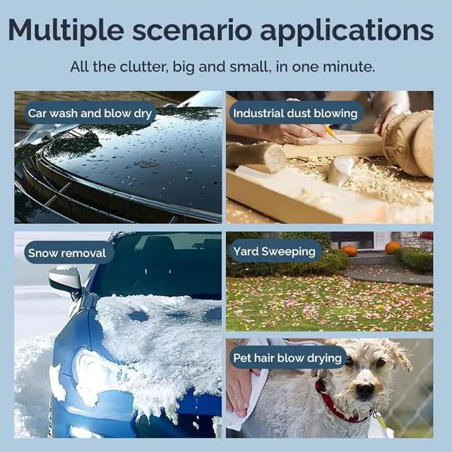 Multifunctional: With its versatile capabilities, the electric air duster serves as a versatile tool for a wide range of tasks. From blowing snow, cleaning yards, and drying BBQs to vehicle cleaning and furniture maintenance, this blower offers multifunctional use, making it an essential companion for various cleaning and maintenance projects.