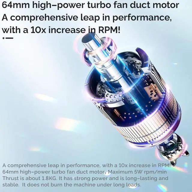 High Efficiency: The air duster blower fan is equipped with an advanced 64mm channel turbo design, delivering an impressive thrust of up to 1800g for rapid and effective cleaning and drying tasks. The high powered airflow ensures quick results, allowing you to tackle various surfaces with ease.