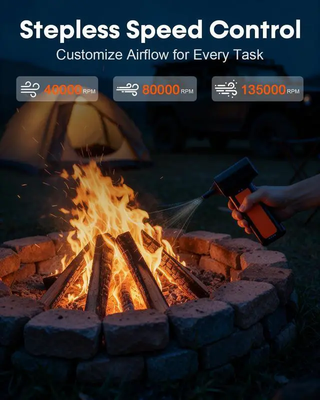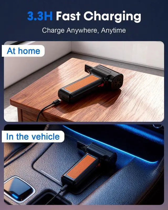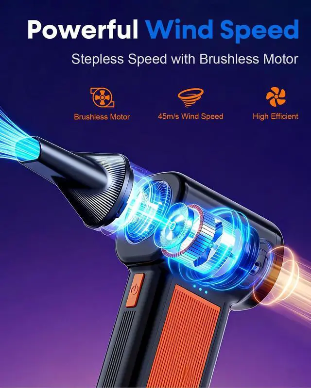 POWERFUL AIRFLOW & DEEP CLEANING ELIMINATE DUST FROM EVERY CORNER Experience powerful cleaning with our high-speed brushless motor delivering high airflow. Perfect for deep cleaning delicate electronics, including keyboards, computer components, camera lenses, and car vents. This compressed air duster is engineered to remove even the most stubborn debris from hard-to-reach places without leaving residue or refills behind. Blow away leaves from your car and easily clear off snow during winter, keeping your vehicle clean all year round