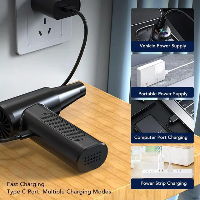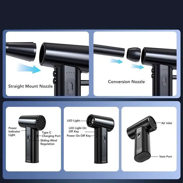 [POWERFUL BRUSHLESS MOTOR] The high-speed motor rotates at up to 130000RPM, delivering an impressive 180g of blowing force, making dust removal efficient and effective
