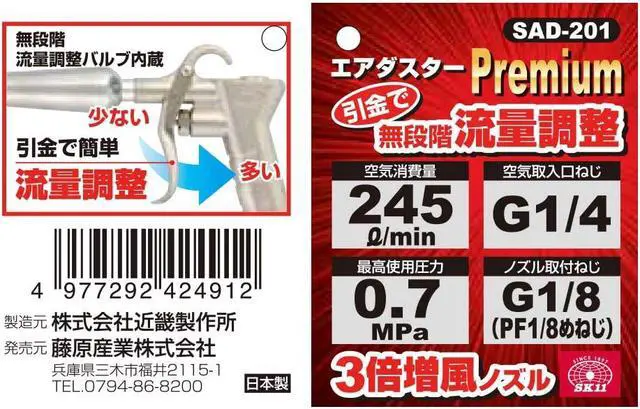 Air consumption: 8.5 gal/min (245 L/min); Applicable fluid: Air