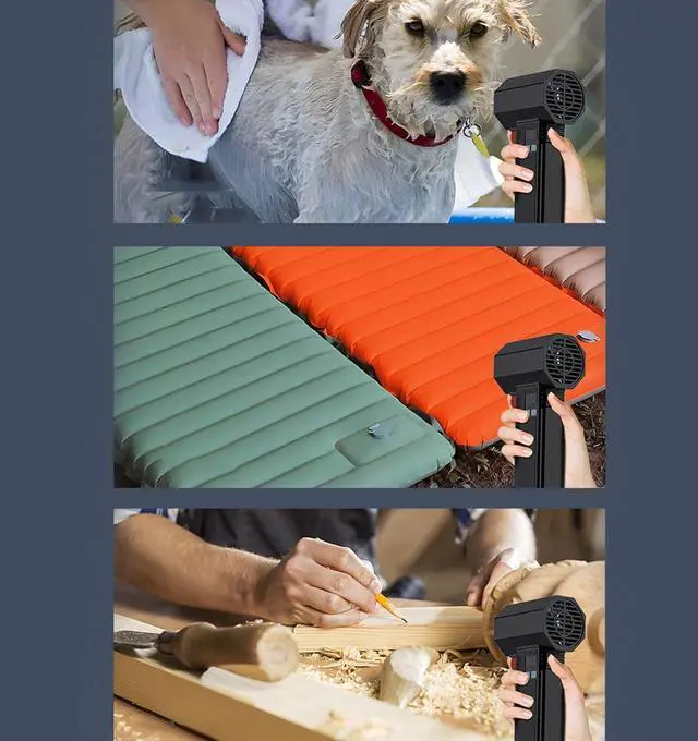 Versatile Use: This handheld blower is designed with LED light to help you easily clean dark corners, suitable for cleaning keyboards, laptops, cameras, car interiors, blinds, and other items, can also inflate airbeds and lifeboats.