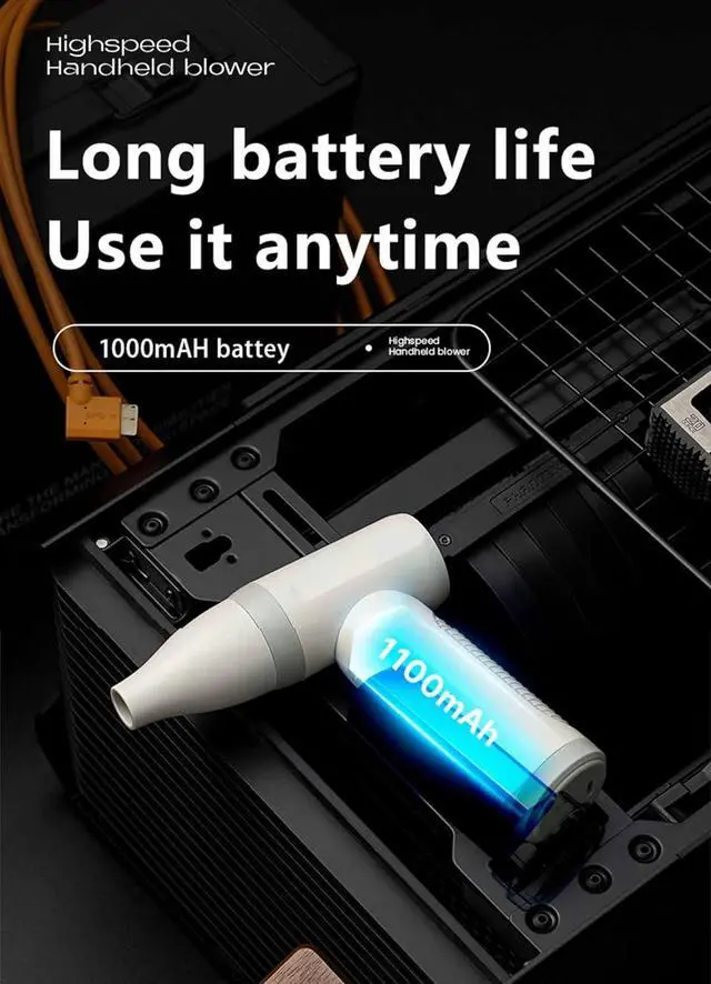 FAST CHARGING, LONG LASTING: Embrace eco-friendly, cost-effective cleaning with our reusable compressed air duster the perfect canned air alternative. built-in 1100mAh large capacity battery, life can reach 2.2 hours, Quick-charge in just 2-2.5 hours, making it an eco-conscious choice for a powerful, reusable solution