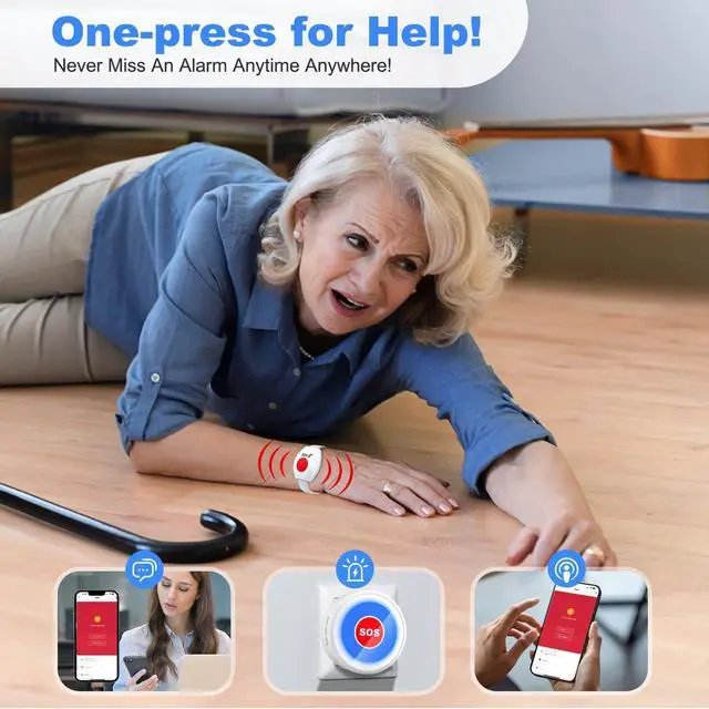& -: a simple press of the SOS button, seniors can quickly call for help, ensuring that caregivers are notified instantly. This personal alarm for elderly is specifically designed for seniors who may not be familiar with technology