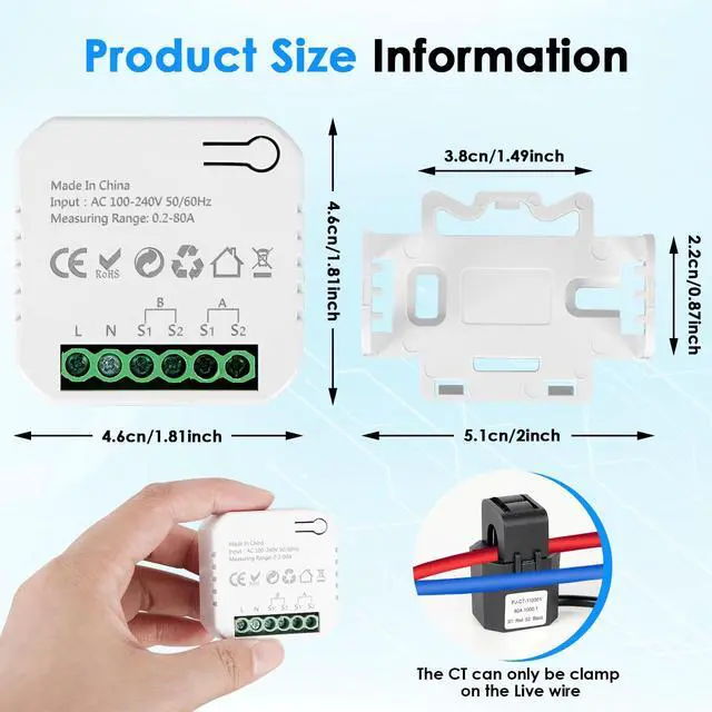 Simplified SetupDesigned for streamlined installation, this smart home energy monitor uses clamp-style sensors that attach externally to monitored circuits without cutting or modifying wires. Follow the in-app guidance to connect to a 2.4GHz Wi-Fi network and complete setup through the Tuya or Smart Life app.