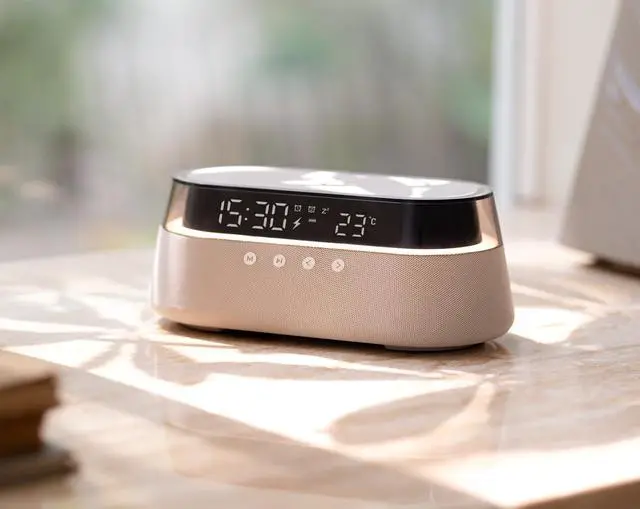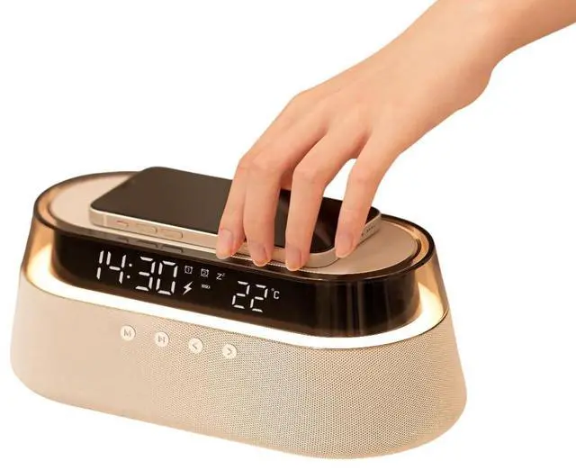 Effortlessly charge your smartphone or other compatible devices using the integrated fast wireless charging pad. Note: Please ensure the device is connected to a power supply for wireless charging to function. Some protective cases may interfere with charging performance. Before using the device for the first time, please connect it to a power supply for five minutes before turning it on by pressing the CLOCK-KEY on the rear side. If you have any questions or need support, we're here to help! All units are thoroughly tested and fully functional.