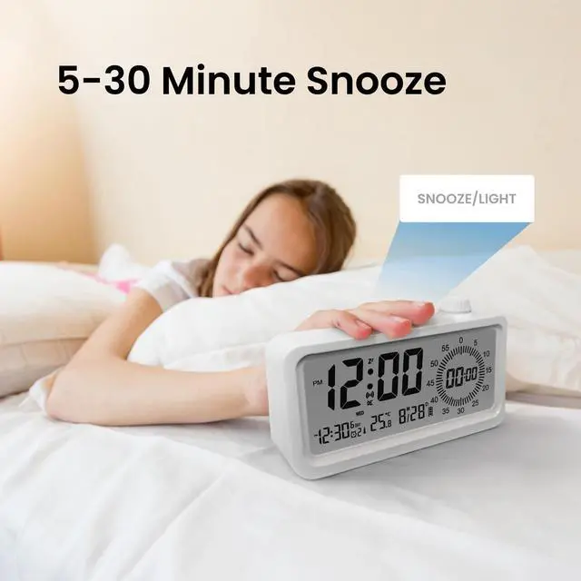 MULTIFUNCTIONAL LCD DISPLAY - The all-in-one LCD clock provides a clear view of various information at a glance, including time, date, month, week, temperature, and alarm. Stay informed with just one screen.