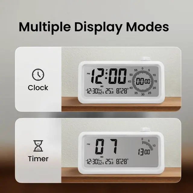 SILENT OPERATION - Say goodbye to noisy traditional clocks and timers that disrupt your focus during studying, work, or sleep. Enjoy a quiet environment for enhanced concentration and avoid noise pollution.