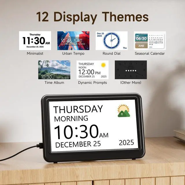 Explore 12 unique themes designed to match every taste. Whether you're into clean, minimalist designs or prefer feature-packed displays, Raynic calendar alarm clock offers the ideal fit for you.