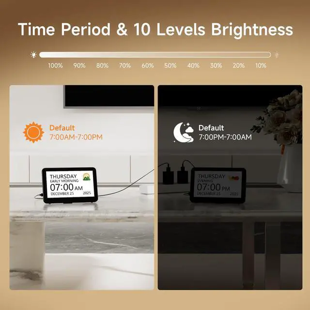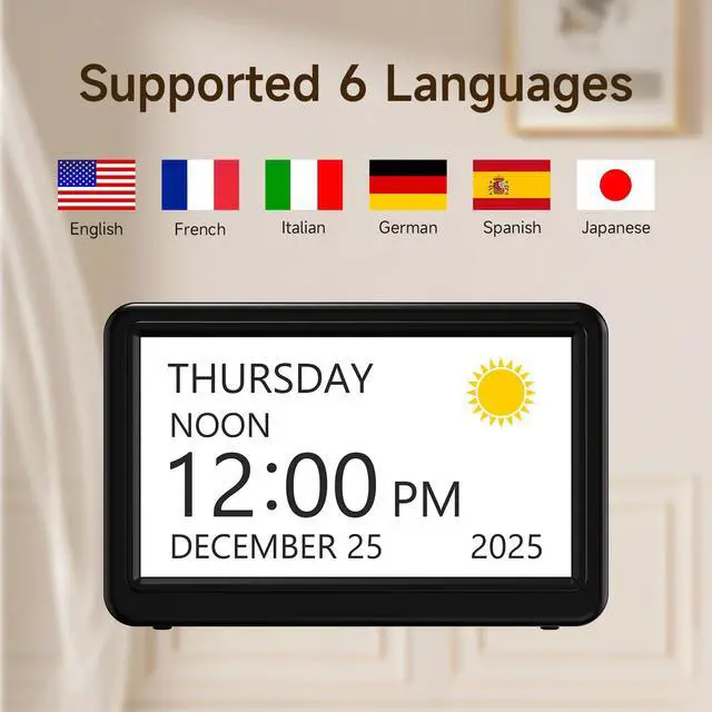 The Raynic 7-inch Calendar Clock features 6 switchable languages and multicolor fonts, providing flexibility to accommodate diverse users. Its versatile design adapts seamlessly to your needs, making it an ideal choice for a wide range of environments
