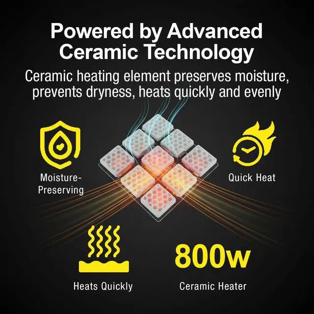The compact, yet powerful ceramic heating element provides incredible warmth, transforming any cold and chilly space into a warm and cozy space! The powerful 800-watt unit is energy efficient and can help you save money!