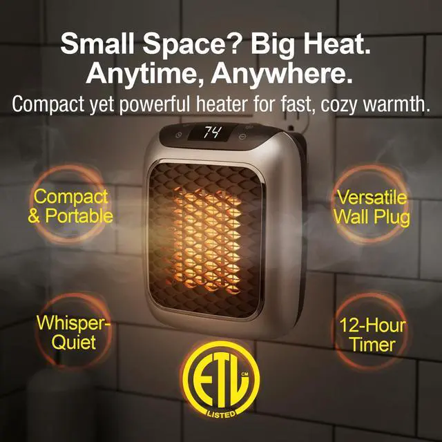 Introducing Handy Heater Turbo 800, the space-saving wall-outlet heater that plugs right into the wall and takes up no space at all!