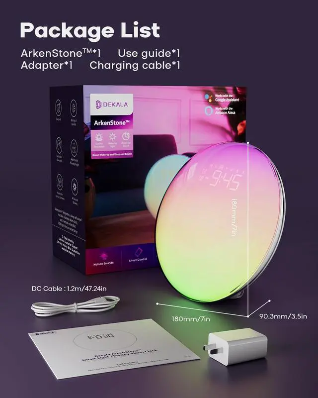 Dekala Sunrise Alarm Clock combines gentle sunrise simulation, soothing white noise, and dual alarms in one smart device.Ideal for heavy sleepers and kids alike, it helps you wake up naturally and fall asleep peacefully.