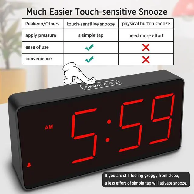 Peakeep Large Number Digital Clock Alarm Clock Battery operated