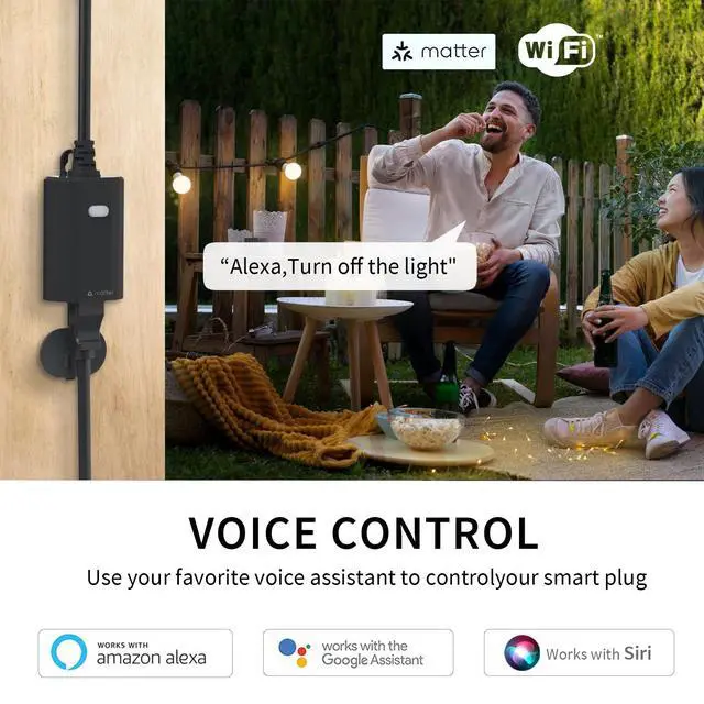 Matter Wifi outlet is compatible with Alexa, Google Assistant and Siri. Control with voice commands!