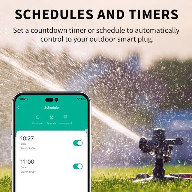 Set a schedule or countdown period in advance. It will turn on or off at the specified time.