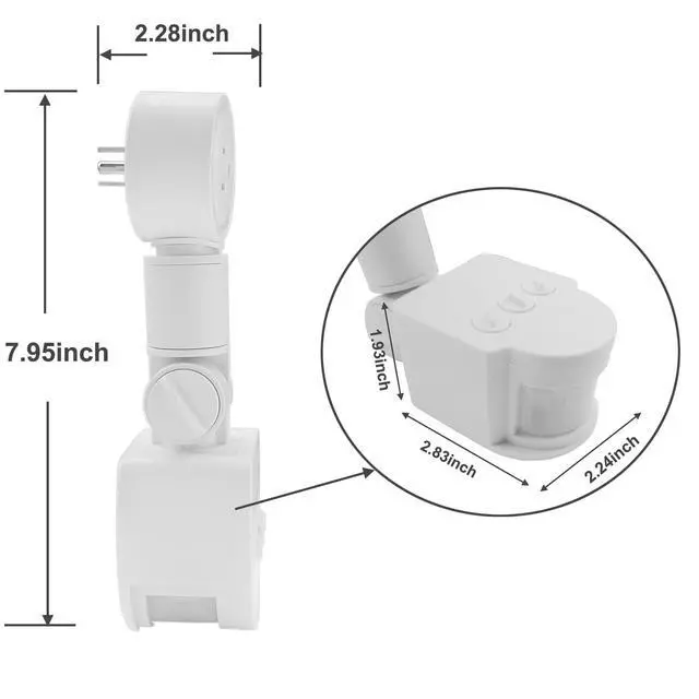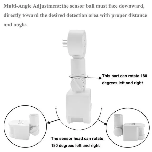 Time Button adjustment can adjust the delay time, your light will turn on automatically in the dark and dusk when detecting motion, and will turn off automatically after your setting time (10sec±5min)without any detecting motion. For example: if you adjust the time button to the position(“—”),it means that the delay time is only 10sec±5sec,so your light will turn off automatically after 10sec±5sec without any detecting motion,“—”means the minimum time,and “+”means maximum time, and the minimum time is 10sec±5sec,the maximum time is 5min±1min;