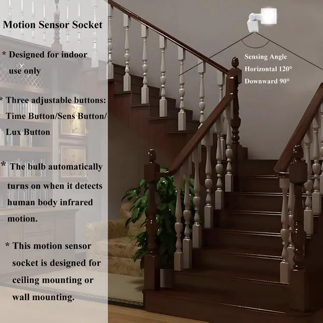This motion sensor socket is designed for ceiling mounting or wall mounting.