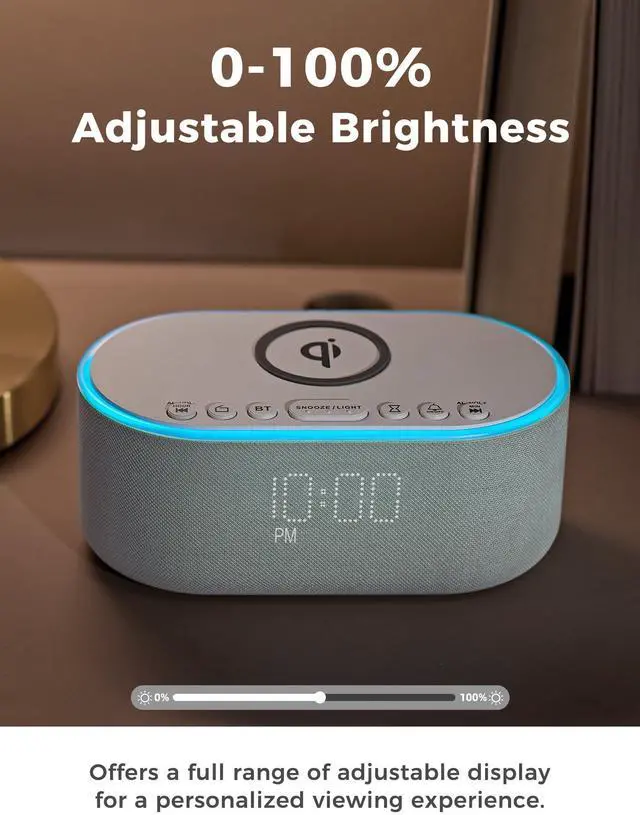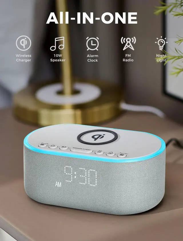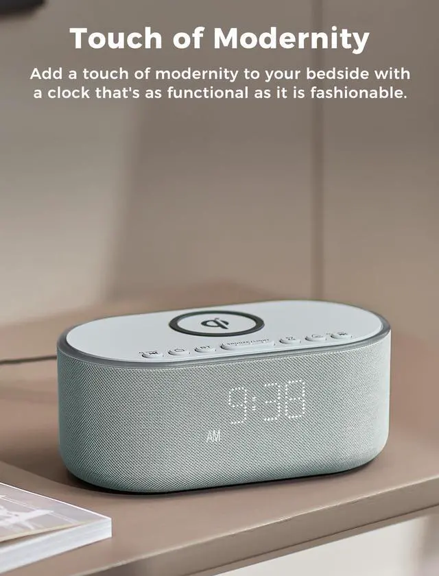 Beyond 8 built-in alarm sounds, you can set your favorite FM radio station as your wake-up sound.