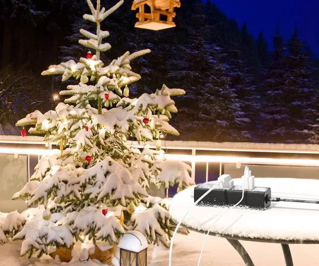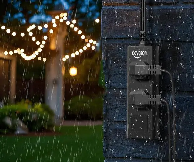 Waterproof power strip: The IPX6 waterproof outdoor surge protector is resistant to rain, water splashes, and even flowing water. Water that flows into the outdoor power strip will flow out through the drainage holes on the back. This means that both AC outlets will keep working in places like kitchens, bathrooms, porches, and the outdoors. Note: This extension cord outdoor can't be completely submerged in water as it's not IPX8