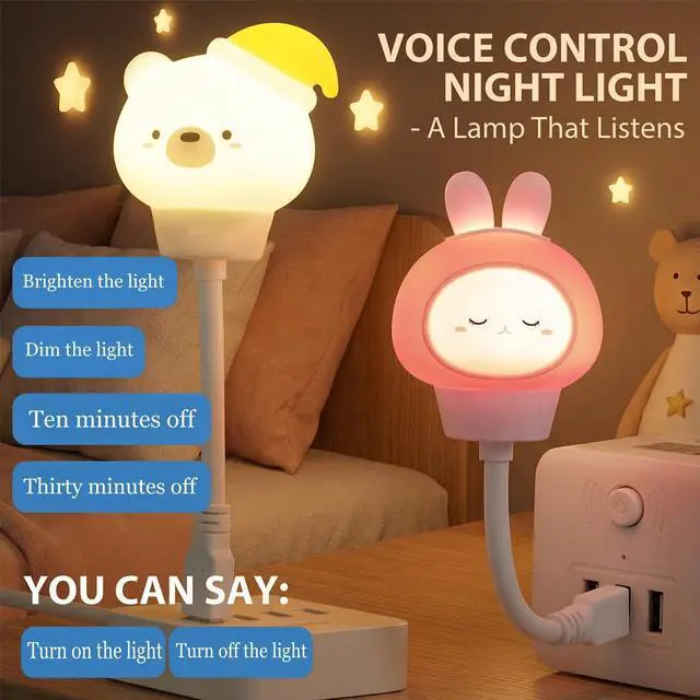 Smart Voice Activated Night Light - USB Plug-in, Dimmable Soft Lighting with Timer for Nursery, Baby Kids Bedroom & Breastfeeding,Portable Voice Control Lamp (Rabbit)