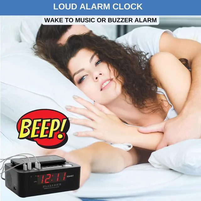 Transform your bedside into the ultimate charging and entertainment hub with this Bluetooth Alarm Clock Radio and Wireless Charging Station. Designed for convenience, it features a powerful 15W wireless charging pad, along with two USB-A and two USB-C ports, so you can keep your smartphone, tablet, smartwatch, and earbuds powered in one organized spot. Say goodbye to cluttered cords and messy surfacesthis clock is perfect for your bedroom, desk, or living room. Enjoy your favorite playlists or podcasts with wireless Bluetooth streaming, or switch to the built-in AM/FM radio to catch local news, sports, and music. The loud alarm ensures even heavy sleepers wake up on time, with the option to rise to a buzzer or your favorite station. A bright LED display makes it easy to check the time at a glance, while the battery backup keeps your alarm and time settings intact during power outages. To conserve energy, the display automatically turns off and can be reactivated with a simple tap. Compact and user-friendly, this clock is easy to set up and operate for all ages, making it a reliable, space-saving addition to any home. Whether you need dependable wake-up calls, clutter-free charging, or background music for relaxation, this multifunctional alarm clock delivers modern convenience in a sleek, practical design.
