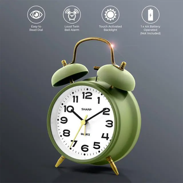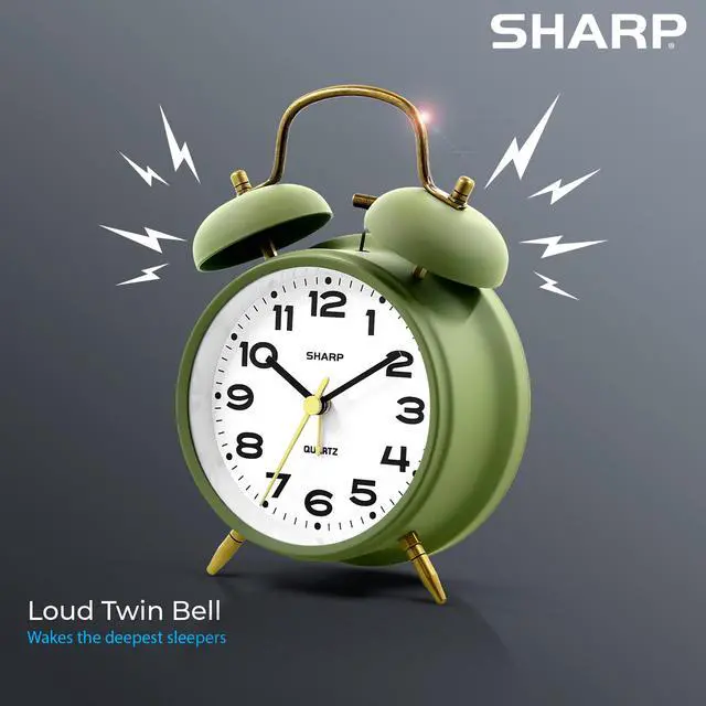 Trouble waking up? No Problem! The Sharp Twin Bell Alarm Clock is the perfect clock for heavy sleepers, hard of hearing, hearing impaired and hearing loss.