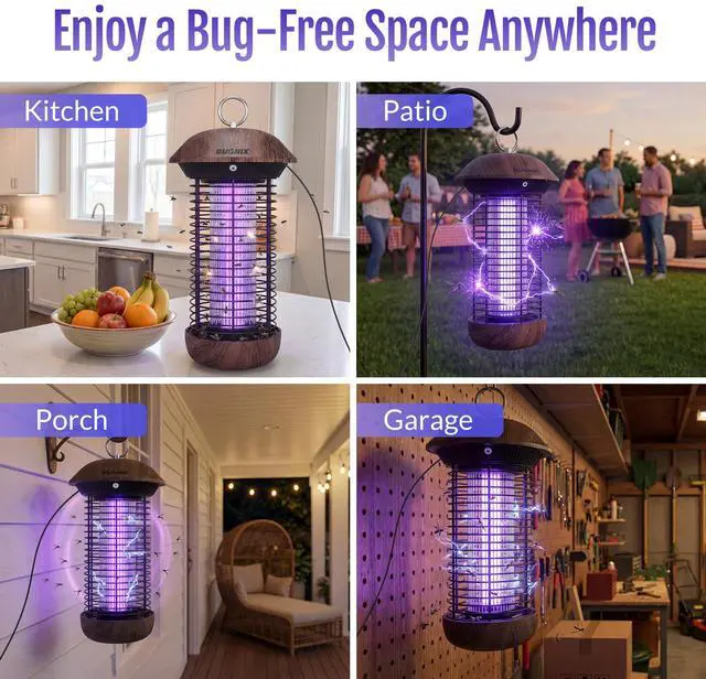 Durable Modern Design & Long-Lasting Performance: Constructed from high-strength ABS material, this electric bug zapper is vibration-resistant and built for long-term use in homes or workshops. The unique wood-grain mushroom design blends modern décor with function, making it more than just a bug light. Long-life LED technology lasts tens of thousands of hours, reducing maintenance and replacement costs for years of reliable protection.