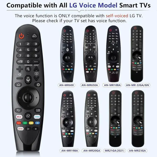 Voice Magic remote for LG Smart TV Remote Control Replacement with Pointer and Voice Control Compatible with LG AN-MR24GA AN-MR23GA AN-MR22GA/GN AN-MR21GA AN-MR20GA AN-MR19BA AN-MR18BA AN-MR650 AN-MR600 TV RemoteCompatible Models: Replacement for lg magic remote control for smart TV Compatible with