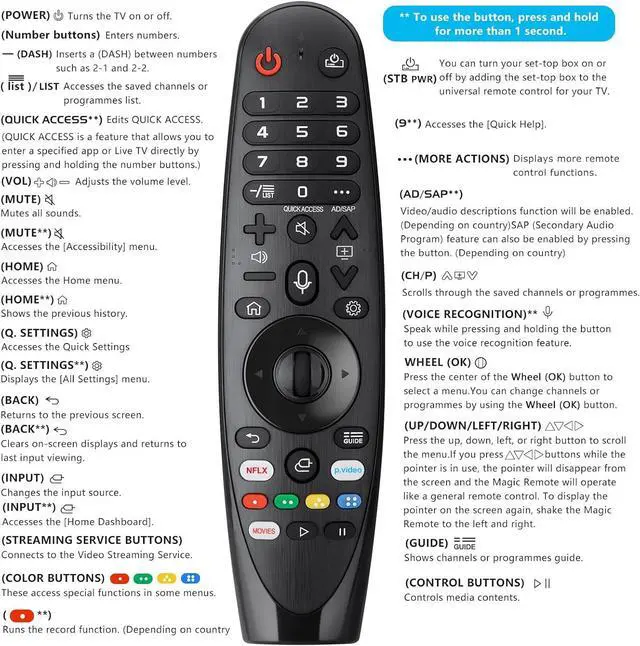 PERFORMANCE: Professionally tested Voice Magic Remote Control for LG TV All-around control of your TV precise control from distances up to 40 feet fastest response to your TV in less than 0.1 seconds and more than 120 000 clicks per buttonPACKAGING