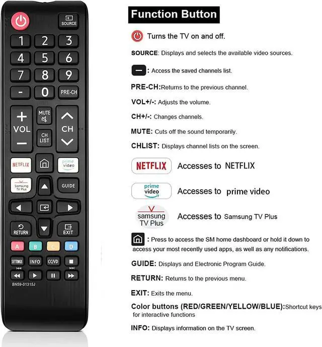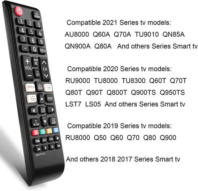 Model: BN59-01301A BN59-01175N BN59-01199F AA59-00741A AA59-00786A AA59-00602A BN59-01247A AA59-00743A BN59-01175B AA59-00818A AA59-00603A BN59-01199G AA59-00622A AA59-00496A AA59-01180A AA59-00666A AA59-00600ACompatible Models: UN58TU7000F UN58TU700DF UN65TU7000F UN43TU7000F UN65TU700DF UN70TU7000F UN70TU700DF UN75TU7000F UN75TU700DF UN55TU7000FXZA UN43TU7000FXZA UN50TU7000FXZA UN50TU700DFXZA UN55TU7000FXZA UN58TU7000FXZA UN65TU7000FXZA UN65TU7000FXZC UN70TU7000FXZA UN75TU7000FXZA UN43TU7000FXZCUN50TU7000FXZC UN55TU7000FXZC UN58TU7000FXZC UN65TU7000FXZC UN70TU7000FXZC UN75TU7000FXZC UN50AU8000FXZA UN55TU8300FXZA QN85Q70AAFXZA QN75Q70AAFXZA QN70Q60AAVXZA QN55QN85AAFXZA QN75QN90AAFXZA QN75Q80AAFXZA QN55QN90AAFXZA QN55LS03AAFXZA QN65QN900AFXZA QN85QN800AFXZA QN55Q70AAFXZANo programming or pairing needed just Insert Two fresh batteries and ready for usePackage