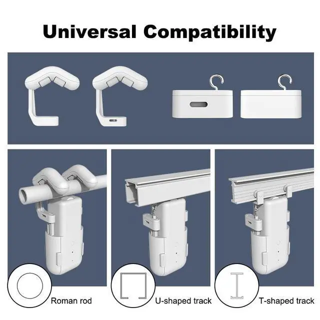 The built-in rechargeable battery means no ugly power cords dangling across your window. A full Type-C charge keeps it running for weeks. When battery gets low, simply detach, charge, and rehang or charge with a power bank right on the rod.