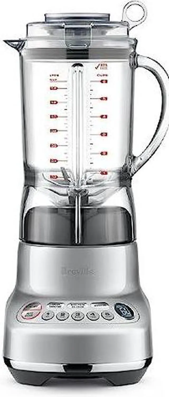 The Breville Fresh and Furious is where power meets versatility; Designed with 9 one touch programs and 5 speed settings for instant smoothies, green smoothies and ice crushing to make what is a rough start, a smooth finish. EVEN BLENDING HEMISPHERE PERFORMANCE: A blender that combines the functionality of a powerful blender with some food processing tasks for versatility and convenience; Crush and chop to turn ice into snow, fold and aerate for creamy smoothies and soups. COMPATIBLE WITH THE VAC Q: The Vac Q removes air from the jug before blending, providing smoother textures, brighter colors and richer flavors to your blend; The vac Q is sold separately. QUIET AND EFFICIENT: The blade design and high torque motor delivers quiet and efficient blending performance; Engineered surgical grade stainless steel, ensures the blades stay sharp, for longer. 1-TOUCH VERSATILITY: Pre-programmed buttons make it super simple to blend the smoothest of smoothies and crush ice into snow