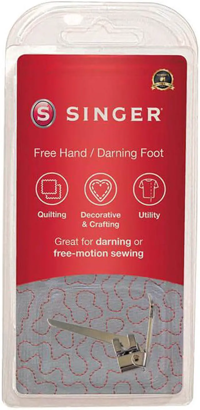 The Darning & Embroidery Foot can be used for free-motion quilting, stippling, thread painting, monograms, and even for repairing torn areas. This foot is one of the most versatile sewing accessories in your sewing room.