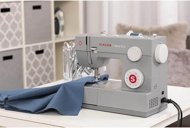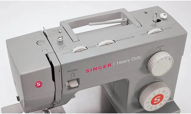 Your machine may come pre-threaded for your convenience. Accessories included are located in the storage area at the front of your machine. SINGER Refurbished sewing machines are 100% inspected & sew tested to meet SINGER Factory Testing standards. The Heavy Duty 4432 sewing machine is designed with your heavy duty projects in mind, from denim to canvas. Thanks to the machine's powerful motor, you have extra high sewing speed to save you time. With adjustable presser foot pressure, you can also sew very lightweight sheers, and the stainless steel bedplate allows fabrics to glide over the machine with ease.