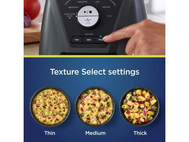 - TEXTURE SELECT TECHNOLOGY: Innovative Texture Select Technology gives you more consistency control than traditional blenders—you can choose 3 automatic food modes (smoothies, shakes, and food chop), and 3 automatic texture settings (Thin, Medium, and Thick)