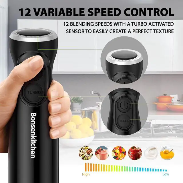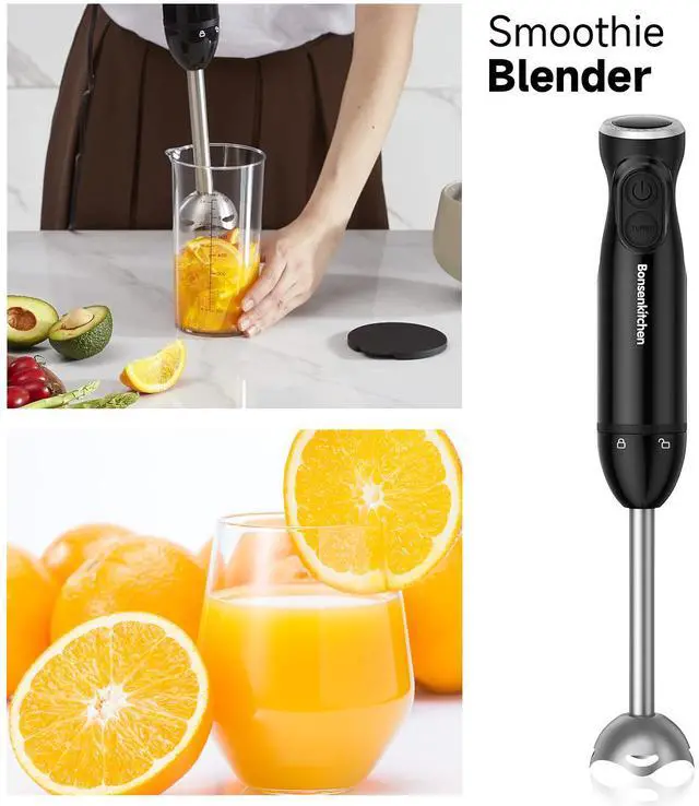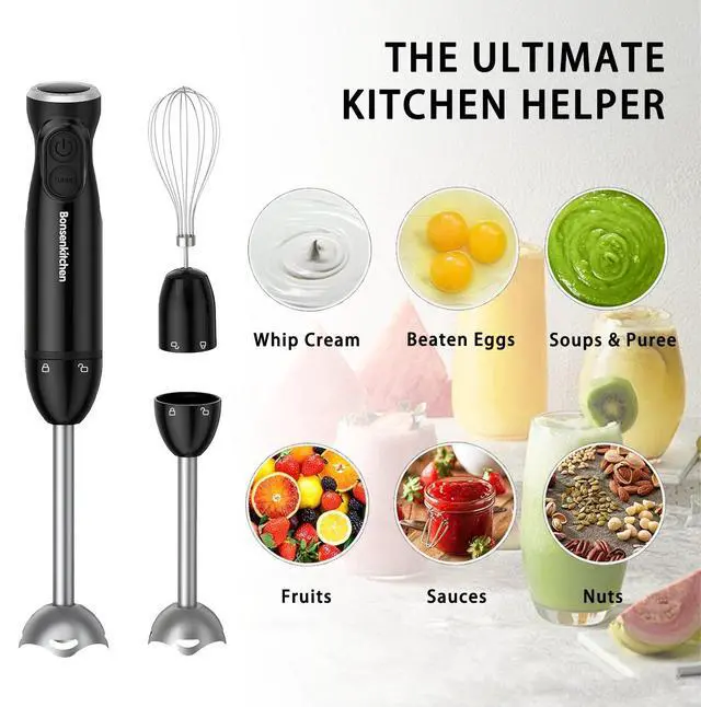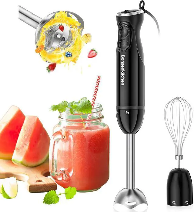 Bonsenkitchen Hand Blender, Electric Immersion Blender with 2-Speed Settings, Portable Stick Mixer with Stainless Steel Blades for Soup, Smoothie, Puree, and Baby Food