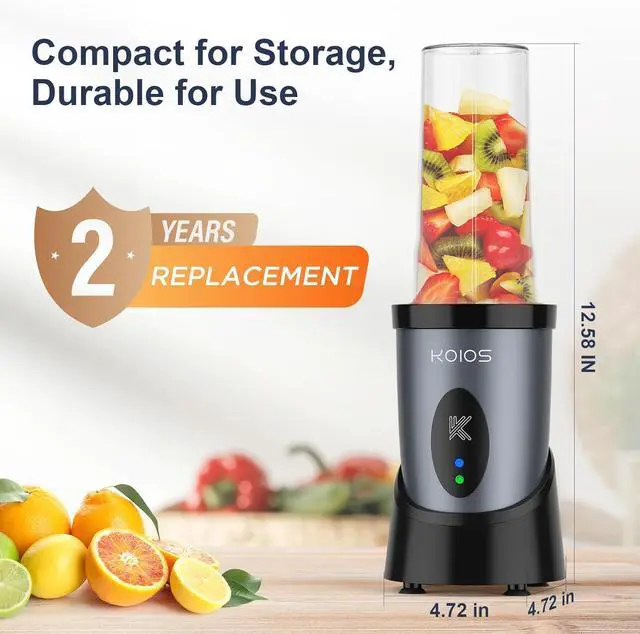Easy to Clean: the electric blender only works when the mixing cup is properly pressed down; Cooling fan on the bottom and the back dissipates heat quickly; Four non-slip silicone pads keep the food blender balanced while working; Cups and lids are dishwasher-safe; 90-day return, 24-month replacement and lifetime technical support