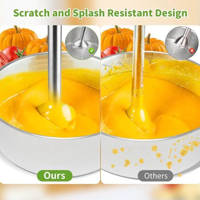 Anti-Scratch & Splash-Free Safety: The immersion blender cordless features food-grade 304 stainless steel blades that protect pots from scratches and minimize splatter. Safely blend directly in hot pots (up to 212°F/100°C) with BPA-free, baby-safe materials.
