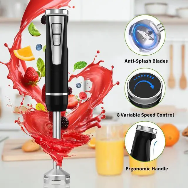 Powerful Motor & 8-Speed Control: This cordless immersion blender boasts a high-power full copper motor that effortlessly crushes ice, nuts, and tough ingredients. With 8 variable speeds, the hand blender cordless ensures precise control for silky soups, smooth baby food, frothy shakes, or chunky salsa.