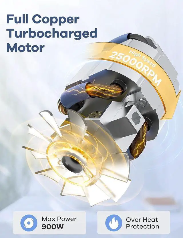 Powerful Smoothie BlenderPeak Power 900W Smoothie Blender for Shakes with upgraded full copper turbocharged motor pulse technology, 25000RPW High Speed, faster and stronger, but just as simple to use. Load it up with dense whole foods like nuts, seeds, hard fruits, then push, twist and blend your way to a healthier lifestyle.