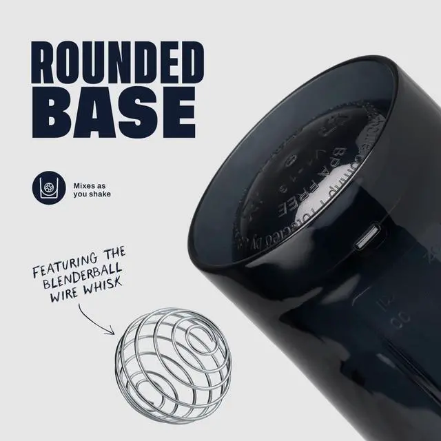 Patented mixing system uses 316 surgical-grade stainless steel BlenderBall wire whisk found only in BlenderBottle brand shaker cups
